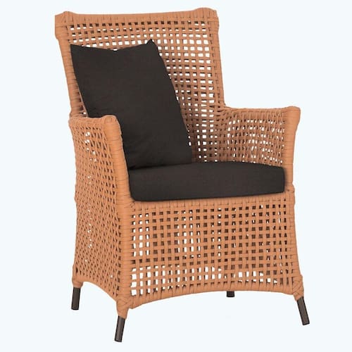 A corda nautica adiciona um toque de rusticidade moderna, enquanto o estofado impermeavel garante que sua poltrona esteja sempre impecavel, mesmo apos uma chuva inesperada ou um acidente com liquidos.