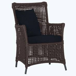 A corda nautica adiciona um toque de rusticidade moderna, enquanto o estofado impermeavel garante que sua poltrona esteja sempre impecavel, mesmo apos uma chuva inesperada ou um acidente com liquidos.