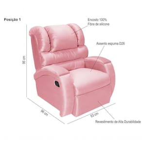 Material: A Poltrona Reclinável Imperial tem sistema zero wall, estrutura em madeira 25mm e mecanismo em aço. O encosto possui enchimento em fibra de silicone e assento em espuma D26.