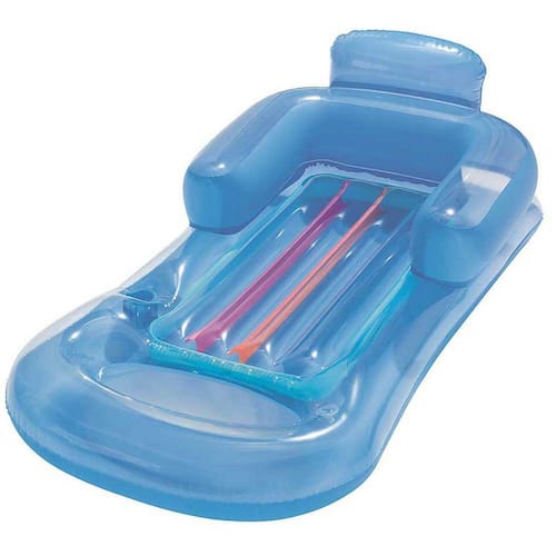 Poltrona Inflável Designer Fashion Loung Azul Com Porta LataA Poltrona Inflável Designer Fashion da Bestway é o modelo ideal para quem quer curtir o sol com muita diversão na piscina Confortável e resistente: seu material passou por diversos testes de força. A poltrona vem com válvulas de segurança e 2 câmaras.- Marca: Bestway- Modelo: Designer Fashion 121540AZ Características- Material: Vinil- Medida: 1,61m x 84cm- Peso: 375g- Indicação: Adultos ou crianças sob supervisão de um responsável- Porta Lata para suas bebidas- Apoio para os braços- Encosto para a cabeça- Descanso para os pés- Cor: AzulItens Inclusos- 01 Poltrona inflável Designer Fashion Bestway Azul- 01 Kit ReparoGarantia6 meses de garantia contra defeito de fabricação. Foto do Produto Meramente ilustrativa, peças de decoração não acompanham os produtos, exceto se informado no anúncio. Todas as informações divulgadas são de responsabilidade do fabricante/fornecedor.