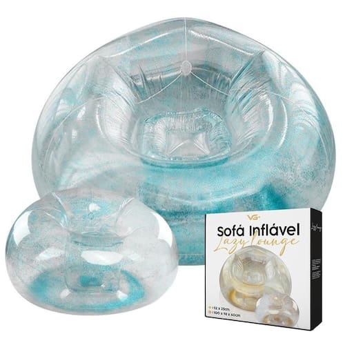 - Dimensões Puff. 52 x 52 x 25cm;Poltrona InflÃvel Lazy Lounge Glitter Com Puff VG Plus Azul