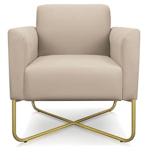 Poltrona Decorativa Isabella Base X Suede Bege/dourado - Gran Belo
