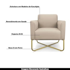 Poltrona Isabella Base X Suede Bege dourado