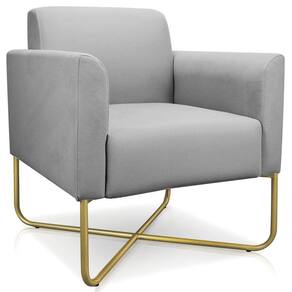 Poltrona Decorativa Isabella Base X Suede Cinza/dourado - Gran Belo