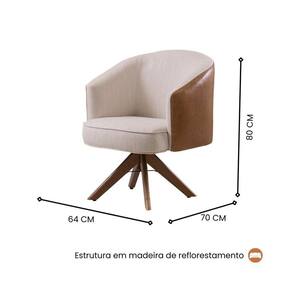 ESPECIFICAÇÕES TÉCNICAS: Estrutura: Madeira Lyptus (reflorestamento) Assento: Fixo com espuma D28, percinta italiana e manta de fibra siliconada Encosto: Fixo com espuma D26, pluma siliconada virgem e manta de fibra silicone Base: Giratória em madeira Suporte de peso: Até 120 kg