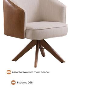Poltrona Julia Giratoria Com Couro Pes Madeira - Luxo Decor Off White/couro A Poltrona Julia é a escolha ideal para quem busca sofisticação aliada ao máximo de conforto. Com linhas curvas e design orgânico, ela se adapta com facilidade a diferentes estilos de decoração, sendo perfeita para compor salas de estar, quartos, recepções ou até mesmo home offices com um toque moderno e acolhedor. Seu acabamento refinado e estrutura robusta garantem durabilidade e funcionalidade no dia a dia. Equipada com base giratória, assento fixo com espuma D28 e encosto com espuma D26 e pluma siliconada, proporciona uma experiência de conforto superior, ideal para momentos de relaxamento ou socialização. A combinação de madeira de reflorestamento e materiais de alto padrão reflete o compromisso com sustentabilidade e qualidade.