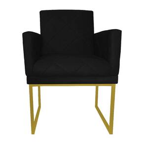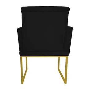 Poltrona Klara Base Metálica Dourada Suede Preto - Vallisa Decor
