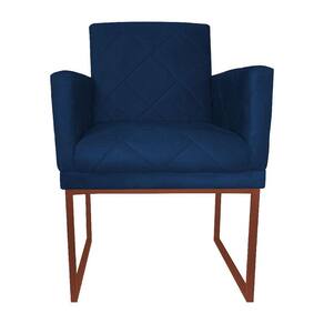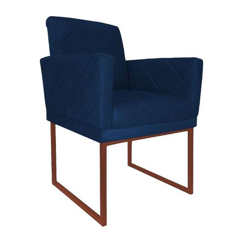Poltrona Klara Suede Azul Marinho Base Metálica Industrial Cobre - Vallisa Decor