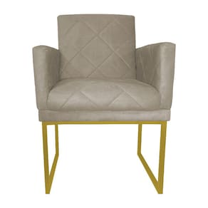 Poltrona Klara Suede Bege Base De Ferro Dourada - Vallisa Decor