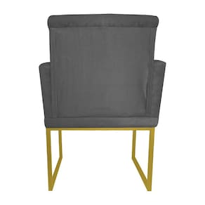 Poltrona Klara Suede Cinza Base Industrial Dourada - Vallisa Decor