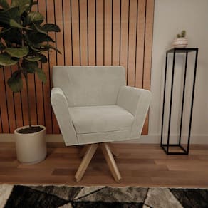 - A Poltrona Laura Base Giratória de Madeira chegará montada para você, bastando encaixar a base giratória;
