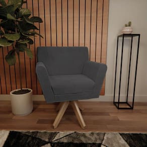 - A Poltrona Laura Base Giratória de Madeira chegará montada para você, bastando encaixar a base giratória;