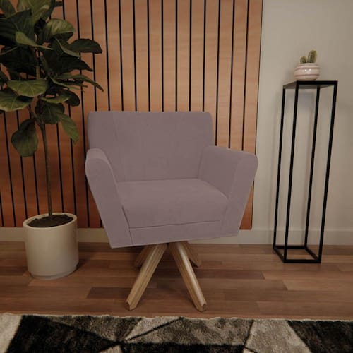 - A Poltrona Laura Base Giratória de Madeira chegará montada para você, bastando encaixar a base giratória;
