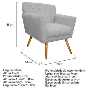 Gostaria de um móvel que trouxesse mais elegância e sofisticação para o seu lar? A Poltrona Laura é sua melhor opção! Com característica moderna e com acabamento de qualidade, este produto atenderá suas expectativas! Não perca essa oportunidade e adquira já a sua! Especificações Técnicas da Poltrona Decorativa Laura: - Altura: 85 cm; - Largura: 70 cm; - Profundidade: 63 cm; - Altura do Assento: 50 cm; - Largura do Assento: 50 cm; - Altura do Braço: 65 cm; - Profundidade do Assento: 45 cm; - Largura do Encosto: 70 cm; - Espessura do Assento: 14 cm; - Altura do Encosto: 41 cm; - Espessura do Encosto: 5 cm; - Altura dos Pés: 30 cm; - Peso: 20 kg. - Peso Suportado: 120 kg. Diferenciais da Poltrona Decorativa Laura: - Material da Estrutura: fabricado com Madeira Pinus e Eucalipto Reflorestada, e alguns detalhes em MDF; - Tipo de Assento: estofado e com espuma de densidade D-26; - Tipo de Encosto: estofado e com espuma de densidade D-18; - Detalhes dos Pés: acompanha kit de pés (4 pés) de madeira, no estilo palito na cor mel, com alta resistência; - Volumes: nessa compra você receberá um único produto. Recomendações de limpeza: -Limpar com flanela limpa e seca. Não molhar o móvel e não expor em lugar úmido ou próximo de fontes de calor. Não usar produtos abrasivos. Observações Importantes: - As imagens ambientadas são meramente ilustrativas e podem apresentar itens que não compõe o produto; - Objetos decorativos que aparecem na foto não acompanham o produto; - As cores do produto podem variar de acordo com o monitor, a iluminação do ambiente, ou sua percepção visual; - A Poltrona Decorativa Laura chegará montada para você, bastando rosquear os pés; - Confira as dimensões antes da compra e certifique-se de que o produto passará por elevadores, portas e corredores, já que nossa entrega não inclui a subida de lances de escada, ou o lançamento de produtos; - Ao receber seus produtos, verifique no ato do recebimento qualquer dano na embalagem. Caso tenha alguma avaria, favor não assinar o comprovante de recebimento (A transportadora tem obrigação de esperar a conferência); - Produto para uso residencial em ambiente interno, não devendo ficar exposto diretamente ao sol, calor e umidades excessivas.