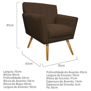 Gostaria de um móvel que trouxesse mais elegância e sofisticação para o seu lar? A Poltrona Laura é sua melhor opção! Com característica moderna e com acabamento de qualidade, este produto atenderá suas expectativas! Não perca essa oportunidade e adquira já a sua! Especificações Técnicas da Poltrona Decorativa Laura: - Altura: 85 cm; - Largura: 70 cm; - Profundidade: 63 cm; - Altura do Assento: 50 cm; - Largura do Assento: 50 cm; - Altura do Braço: 65 cm; - Profundidade do Assento: 45 cm; - Largura do Encosto: 70 cm; - Espessura do Assento: 14 cm; - Altura do Encosto: 41 cm; - Espessura do Encosto: 5 cm; - Altura dos Pés: 30 cm; - Peso: 20 kg. - Peso Suportado: 120 kg. Diferenciais da Poltrona Decorativa Laura: - Material da Estrutura: fabricado com Madeira Pinus e Eucalipto, e alguns detalhes em MDF; - Tipo de Assento: estofado e com espuma de densidade D-26; - Tipo de Encosto: estofado e com espuma de densidade D-18; - Detalhes dos Pés: acompanha kit de pés (4 pés) de madeira, no estilo palito na cor mel, com alta resistência; - Volumes: um único produto. Recomendações de limpeza: -Limpar com flanela limpa e seca. Não molhar o móvel e não expor em lugar úmido ou próximo de fontes de calor. Não usar produtos abrasivos.