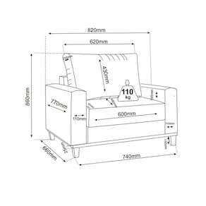 Características: Estrutura em MDP Pés de Madeira Assento com mola bonnel Espuma D23 Encosto fixo Almofada solta de fibra siliconada 100 Suporta até 110kg Revestimento em tecido linho