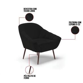 A poltrona Giovana é uma peça indispensável para momentos de descanso depois de um dia longo de trabalho. E não há nada melhor que poder relaxar em um móvel de extremo conforto não é mesmo! Afinal ela dará aquele toque de perfeição ao seu ambiente. Conta com uma estrutura reforçada em madeira eucalipto que oferece alta resistência e qualidade ao móvel. Produzida com Pés Palito de Ferro que suportam até 120 kg, seu estofamento é com espuma de densidade D-23, revestido em tecido Linho no tom Preto A79 que contribui para que o assento fique firme por mais tempo. Sua durabilidade e conforto é seu diferencial. Você também amou? Então, é só escolher a Poltrona que tem mais a ver com a sua decoração.