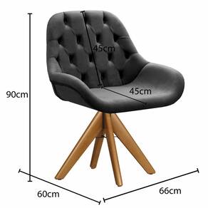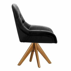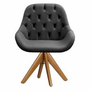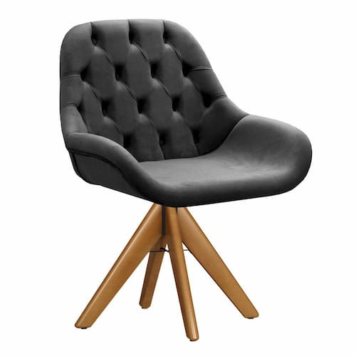 Poltrona Lua Capitonê Cadeira Pé Giratório de Madeira Decoração Sala Escritório - Preto