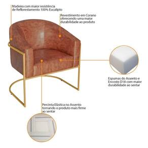 Especificações Técnicas da Poltrona Decorativa Luiza:- Altura: 80 cm;- Largura: 69 cm;- Profundidade: 60 cm;- Altura do Assento: 45 cm;- Largura do Assento: 47 cm;- Profundidade do Assento: 47 cm;- Altura do Encosto: 38 cm;- Espessura do Assento: 15 cm;- Espessura do Encosto: 10 cm;- Altura dos Pés: 30 cm;- Peso: 20 kg.- Peso Suportado: 120 kg.Diferenciais da Poltrona Decorativa Luiza:- Material da Estrutura: fabricado com Madeira Pinus e Eucalipto Reflorestada, e alguns detalhes em MDF;- Tipo de Assento: estofado e com espuma de densidade D-18;- Tipo de Encosto: estofado e com espuma de densidade D-18;- Detalhes dos Pés: acompanha base ferro, com alta resistência;Recomendações de limpeza:-Limpar com flanela limpa e seca. Não molhar o móvel e não expor em lugar úmido ou próximo de fontes de calor. Não usar produtos abrasivos.Observações Importantes:- As imagens ambientadas são meramente ilustrativas e podem apresentar itens que não compõe o produto;- Objetos decorativos que aparecem na foto não acompanham o produto;- As cores do produto podem variar de acordo com o monitor, a iluminação do ambiente, ou sua percepção visual;- Confira as dimensões antes da compra e certifique-se de que o produto passará por elevadores, portas e corredores;- Produto para uso residencial em ambiente interno, não devendo ficar exposto diretamente ao sol, calor e umidades excessivas.