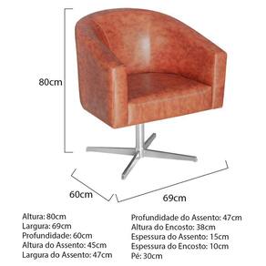 Especificações Técnicas da Poltrona Luiza:- Altura: 80 cm;- Largura: 69 cm;- Profundidade: 60 cm;- Altura do Assento: 45 cm;- Largura do Assento: 47 cm;- Profundidade do Assento: 47 cm;- Altura do Encosto: 38 cm;- Espessura do Assento: 15 cm;- Espessura do Encosto: 10 cm;- Altura dos Pés: 30 cm;- Peso: 20 kg.- Peso Suportado: 120 kg.Diferenciais da Poltrona Luiza:- Material da Estrutura: fabricado com Madeira Pinus e Eucalipto Reflorestada, e alguns detalhes em MDF;- Tipo de Assento: estofado e com espuma de densidade D-18;- Tipo de Encosto: estofado e com espuma de densidade D-18;- Detalhes dos Pés: acompanha base giratória, com alta resistência;Recomendações de limpeza:-Limpar com flanela limpa e seca. Não molhar o móvel e não expor em lugar úmido ou próximo de fontes de calor. Não usar produtos abrasivos.Observações Importantes:- As imagens ambientadas são meramente ilustrativas e podem apresentar itens que não compõe o produto;- Objetos decorativos que aparecem na foto não acompanham o produto;- As cores do produto podem variar de acordo com o monitor, a iluminação do ambiente, ou sua percepção visual;- A Poltrona Luiza chegará desmontada para você, bastando encaixar a base giratória;- Confira as dimensões antes da compra e certifique-se de que o produto passará por elevadores, portas e corredores;- Produto para uso residencial em ambiente interno, não devendo ficar exposto diretamente ao sol, calor e umidades excessivas.