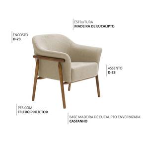Poltrona Luna Base Madeira Castanho Poliéster Bouclé Bege - Nexta Casa Poltrona Luna Sofisticação Minimalista e Conforto Acolhedor Transforme seu cantinho com uma peça que une elegância simples e serenidade encantadora!Descrição do Produto A Poltrona Luna, da Nexta Casa, é a escolha perfeita para quem busca conforto e charme em uma decoração minimalista. Com um design sofisticado e linhas simples, ela adiciona um toque de serenidade a salas de estar, quartos, escritórios ou cantos de leitura. Revestida em tecido com aplicação Easy & Clean, garante praticidade na manutenção e um visual refinado. A estrutura em madeira reflorestada de eucalipto oferece robustez, enquanto a espuma D-28 HR no assento e D-23 no encosto e braços proporcionam maciez excepcional e suporte ergonômico. Os pés em madeira de eucalipto envernizada na cor castanho suportam até 110 kg, unindo estabilidade e estética natural. Compacta e pronta para uso imediato, a Poltrona Luna eleva qualquer ambiente com sofisticação e funcionalidade!Características Técnicas Estrutura: Madeira reflorestada de eucalipto tratada robustez e sustentabilidade. Assento: Espuma D-28 HR conforto firme e duradouro. Encosto: Espuma D-23 suporte ergonômico ideal. Braços: Espuma D-23 apoio macio e harmonioso. Revestimento: Tecido com aplicação Easy & Clean praticidade e visual refinado. Pés: Madeira de eucalipto envernizada, modelo fixo. Cor dos Pés: Castanho. Peso Suportado: Até 110 kg sem impacto. Medidas Altura Total: 80 cm Largura: 75 cm Profundidade: 68 cm Peso: 16,5 kg Altura do Encosto: 43 cm Altura do Assento ao Chão: 47 cm Largura do Assento: 50 cm Profundidade do Assento: 48 cm Altura do Braço ao Assento: 23 cm Largura do Braço: 10 cm Altura dos Pés: 30 cm Diferenciais Design sofisticado elegância minimalista para diversos estilos de decoração. Tecido com aplicação Easy & Clean fácil limpeza e manutenção. Espuma D-28 HR no assento conforto de alta qualidade. Pés em madeira de eucalipto castanho estabilidade e charme natural. Estrutura em madeira reflorestada qualidade e responsabilidade ambiental. Compacta e versátil ideal para salas, quartos e escritórios. Quantidade de Volumes: 1. Não necessita de montagem pronta para uso imediato! Cuidados Utilizar um pano levemente umedecido com água, seguido de pano seco. Evitar exposição ao sol para preservar a cor vibrante do tecido. Não sentar nos braços ou encosto do produto. Não usar produtos abrasivos, corantes ou escovas rígidas. Garantia 3 meses contra de fabricação. Observações Imagens ilustrativas; tonalidade pode variar devido à configuração de cores da tela. Objetos de decoração não inclusos. Produtos enviados embalados com , reduzindo riscos de danos. Verificar as condições da embalagem na e reportar danos no . até a porta de entrada ou portaria. Confirme as dimensões e compatibilidade do de instalação. Não nos responsabilizamos por montagem, desmontagem, instalação ou por escadas/elevadores. Marca: Não Informado