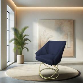Poltrona Luxo Alana Suede Base de Ferro Dourado - Pallazio - Azul Marinho