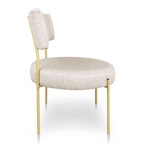 Poltrona Luxo Elora Linho Bege Pés De Ferro Dourado - Pallazio