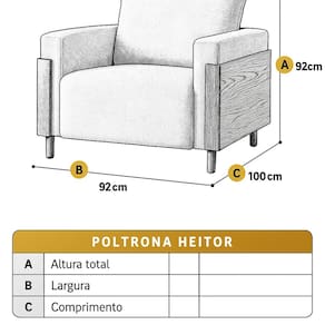 Cuidado simples: Use pano levemente umedecido, seguido de seco. Evite exposição direta ao sol e não utilize escovas. Acompanha Almofadas extras: Não Acompanha Puff: Não Almofada do assento: Fixa Almofada do encosto: Removível Altura do assento até o chão: 48 cm Altura do Encosto: 50 cm Altura dos Pés: 10 cm Ambiente Principal: Sala de Estar codigo_ean: 7900288248329 Complexidade da Montagem: Baixa: pode ser montado por uma pessoa sozinha Cor: Bege Cor do Produto: Bege Design Assinado: Não Enchimento do Assento: Espuma D-26 Enchimento do Braço: Espuma D-23 Encosto para a Cabeça: Não Estampado: Não Extensível: Não Firmeza do Assento: Médio Itens Inclusos: 1 Poltrona Linha ou Coleção: Heitor Marca: Castellar Móbile Material do Braço: Estofado Material dos Pés: Madeira Modelo de Poltrona: Fixo Necessita Montagem: Sim Origem do Produto: Nacional Peso: 17 kg Possui Percintas Elásticas: Sim Possui Pés: 04 Possui Rodízio: Não Recomendações de Uso, Manutenção e Limpeza: Utilizar um pano levemente umedecido, seguido de pano seco. Evitar exposição ao sol, para que não sofra alterações na cor do tecido. Não limpar com escovas ou semelhantes. Sistema de Montagem: Chave de fenda/Philips/Parafusadeira Suporta Até (kg): 140 kg Tecido Predominante: Linho Tipo de Assento: Fixo Tipo de Encosto: Fixo Tipo de Espuma do Assento: Espuma Convencional Tipo de Poltrona: Decorativa