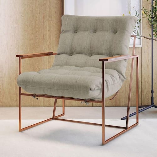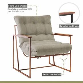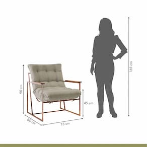 Poltrona M03 Estrutura Em Ferro Mais Decor Cobre/areia Dona de uma tonalidade classica e design que se destaca em qualquer ambiente, a Poltrona M03 vai oferecer o empurraozinho que seu lar-style precisa para ficar impecavel. Com estrutura moderna, o cantinho em que escolher posiciona-la - seja sala de estar, dormitorio ou home office - ficara aconchegante e os momentos relax serao muito mais completos e prazerosos. De quebra, a decoracao vai ganhar uma aliada de muito charme e que sera essencial para deixar o dia a dia ai na sua casa mais bonito e sofisticado. Caracteristicas: Marca: Mais Decor Modelo: M03 Tecido Predominante: Linho Material da Estrutura: Ferro Tipo de Poltrona: Decorativa Acompanha Puff: Nao Tipo de Encosto: Fixo Almofada do Encosto: Fixa Enchimento do Encosto: Espuma D-18 Altura do Encosto: 50 cm Tipo de Espuma do Encosto: Fibra Siliconada Tipo de Assento: Fixo Altura do Assento ate o Chao: 45 cm Enchimento do Assento: Espuma D-26 Firmeza do Assento: Medio Tipo de Espuma do Assento: Espuma Convencional Material do Braco: Madeira Possui Apoio para Bracos: Sim Enchimento do Braco: Nao Possui Possui Pes: 04 Material dos Pes: Ferro Altura dos Pes: 31 cm Necessita Montagem: Nao Recomendacoes de Uso, Manutencao e Limpeza: Uma boa maneira de aumentar o tempo de vida util do seu sofa e evitar exposicao direta do estofado ao sol, ja que os raios podem queimar e manchar a grande maioria dos tecidos desses itens da sua casa. Suporta Ate (kg): 120 Possui Percintas Elasticas: Sim