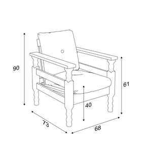 MadeiraA Poltrona Madeira Maciça Liz Multimóveis é produzida em madeira maciça (pinus) proveniente de reflorestamento e possui almofada solta preenchida com flocos de espuma e revestida em poliéster, que garante maior conforto e durabilidade. Uma ótima opção para deixar sua sala de estar acolhedora paracurtir os melhores momentos com a família ou amigos. Suporta até 100kg.