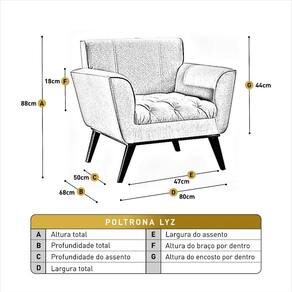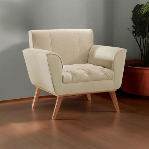 Verificar dimensões para acesso ao local de uso Acompanha Almofadas extras: Não Acompanha Puff: Não Almofada do assento: Não Possui Almofada do encosto: Fixa Altura do assento até o chão: 43 cm Altura do Encosto: 31 cm Altura dos Pés: 24 cm Ambiente Principal: Sala de Estar Complexidade da Montagem: Baixa: pode ser montado por uma pessoa sozinha Cor: Bege Claro Cor do Produto: Bege Claro Design Assinado: Não Enchimento do Braço: Espuma D-26 Enchimento do Encosto: Espuma D-26 Encosto para a Cabeça: Não Estampado: Não Extensível: Não Informações Complementares: Base bordada. Itens Inclusos: 1 Poltrona Linha ou Coleção: PREMIUM Material do Braço: Madeira Estofada Material dos Pés: Madeira Maciça Modelo de Poltrona: Fixo Necessita Montagem: Sim Origem do Produto: Nacional Peso: 24,1 kg Possui Percintas Elásticas: Sim Possui Pés: 04 Possui Rodízio: Não Recomendações de Uso, Manutenção e Limpeza: Utilizar um pano levemente umedecido, seguido de pano seco.Evitar exposição ao sol, para que não sofra alterações na cor do tecido.Não limpar com escovas ou semelhantes. Sistema de Montagem: Enroscar os pés na base Suporta Até (kg): 140 kg Tecido Predominante: Veludo Tipo de Assento: Fixo Tipo de Encosto: Fixo Tipo de Espuma do Encosto: Soft Tipo de Poltrona: Decorativa