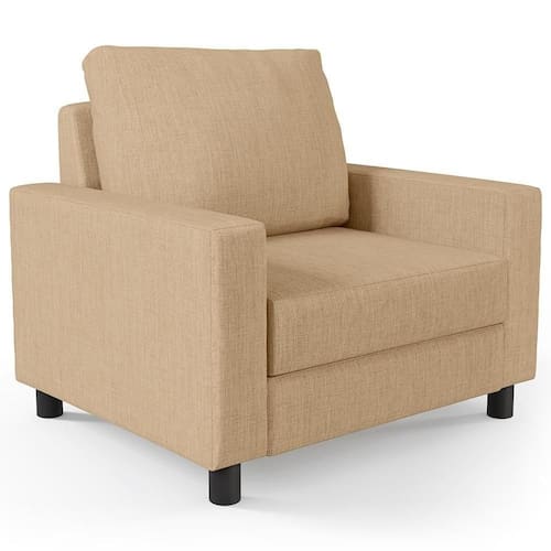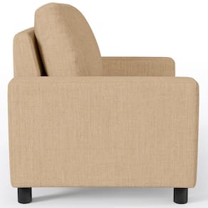 As possibilidades para sua disposição são infinitas, seja para escritório, recepção, sala de espera ou estar, entre outras, seu conforto e beleza transformarão sua decoração por inteiro. Cabe mencionar também seu revestimento em Linho Bege Escuro, que contrasta perfeitamente com os pés na cor preto fosco e dão uma sutil delicadeza à peça. Garanta já a sua!
