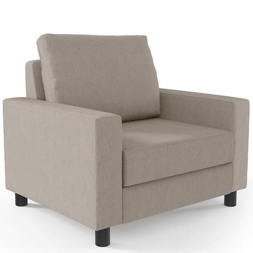 As possibilidades para sua disposição são infinitas, seja para escritório, recepção, sala de espera ou estar, entre outras, seu conforto e beleza transformarão sua decoração por inteiro. Cabe mencionar também seu revestimento em Linho Bege, que contrasta perfeitamente com os pés na cor preto fosco e dão uma sutil delicadeza à peça. Garanta já a sua!