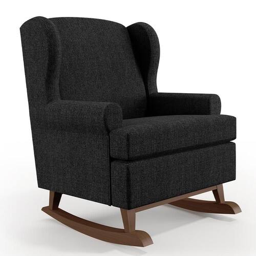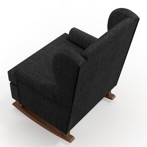 Poltrona De Amamentação Com Balanço Malu Base De Madeira P02 Linho Chumbo - Lyam Decor