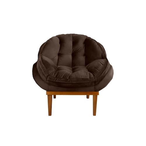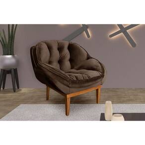 Poltrona Decorativa Marcela Em Tecido Veludo Com Base Em Madeira