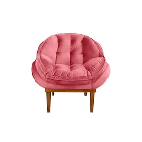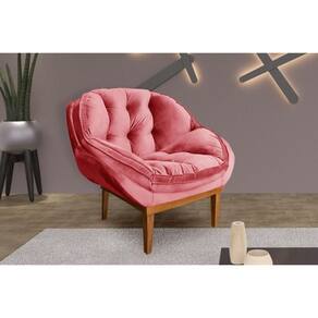 Poltrona Marcela Em Tecido Veludo Base Em Madeira - Blush