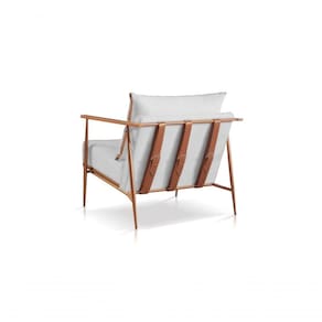 Com um design moderno e versátil, a Poltrona Mari se destaca por sua base em ferro (com acabamento em cobre, conforme o título sugerido), que proporciona durabilidade e resistência para o uso diário. A elegante combinação do metal, do tecido linho off-white (conforme o título otimizado) e do charmoso detalhe em cinto em material sintético oferece um toque diferenciado, adaptando a poltrona a diversos estilos de decoração e ambientes.