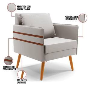Que tal a Poltrona Mari? Imagine-se utilizando esse produto e usufruindo de todos os benefícios que ela oferece. Usar essa poltrona é bem simples! Pode ser utilizada para evidenciar e enriquecer o seu ambiente, descansar depois de um dia longo de trabalho, ver aquela série favorita ou simplesmente ler seu livro predileto. Sua estrutura é confeccionada em madeira de eucalipto proveniente de reflorestamento, suportando em média até 120 Kg, possuí seus pés palito em madeira, garantindo uma maior resistência e durabilidade ao produto, o estofamento do assento e encosto é composto de espuma D-23, revestido em tecido Veludo. Então, se a sua dificuldade é a otimização de espaço, a poltrona além de confortável e sofisticada, traz toda a funcionalidade que você precisa. Apenas algumas unidades estão disponíveis! Garanta a sua Poltrona Mari antes que acabem agora mesmo!