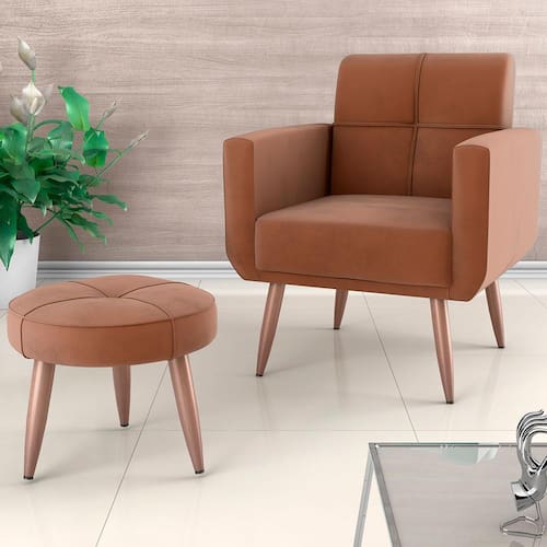 A poltrona Havana da Matrix é compacta e perfeita para atender todas as suas necessidades. Ela é revestida em tecido veludo e produzida a partir de madeira de reflorestamento, tal como eucalipto moveleiro. Também possui apoio para os braços, almofadas do assento e encosto fixas, acabamento em grampos e parafusos, lindos pés palito de madeira castanho e capacidade para suportar até 110kg.