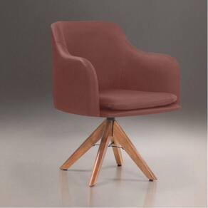 Poltrona Messina em Couro e Base Giratória Madeira Havana - Blush