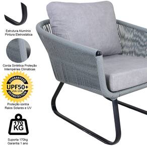 Poltrona Milão em Alumínio e Corda Sintetica Jardim Trama - Sépia