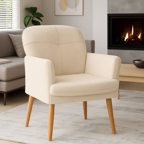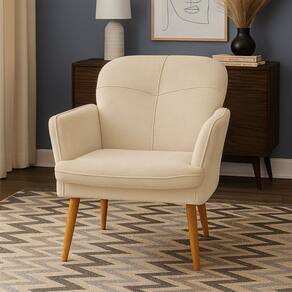 Poltrona Milli com Pés Palito em Madeira Eucalipto Bege Claro
