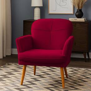 Poltrona Milli com Pés Palito em Madeira Eucalipto Vermelho
