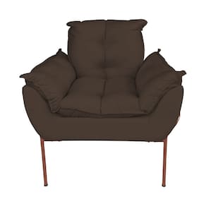Poltrona Moderna Base Cobre Suede Marrom - Vallisa Decor