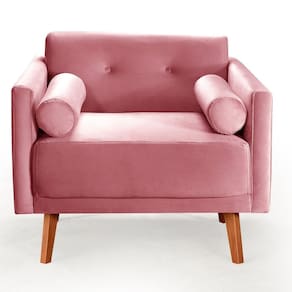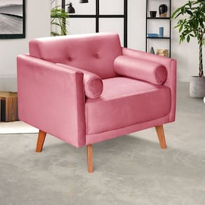 Eventuais despesas é de responsabilidade do cliente. Acompanha Almofadas extras: 02 Acompanha Puff: Não Almofada do assento: Removível Almofada do encosto: Não Possui Altura do assento até o chão: 0 cm Altura do Encosto: 80 cm Ambiente Principal: Sala de Estar Cor: Rosa Cor do Produto: Rosa Design Assinado: Não Enchimento do Braço: Espuma D-26 Encosto para a Cabeça: Não Estampado: Não Extensível: Não Informações Complementares: 120Kg por acento Itens Inclusos: 1 Poltrona Luma (no tecido escolhido) 2 Almofadas Soltas 4 Pés de Madeira Kit com 10 parafusos Material do Braço: Madeira e Espuma Material dos Pés: Madeira Eucalípto Modelo de Poltrona: Fixo Necessita Montagem: Não Peso: 24 kg Possui Percintas Elásticas: Sim Possui Pés: 04 Possui Rodízio: Não Recomendações de Uso, Manutenção e Limpeza: Limpeza e cuidados: pode ser utilizado aspirador de pó, escova com cerdas macias ou limpeza a seco. Não utilizar produtos químicos, abrasivos ou limpeza a vapor. Evitar exposição prolongada ao sol. Suporta Até (kg): 120 kg Tecido Predominante: Suede Tipo de Assento: Fixo Tipo de Encosto: Fixo Tipo de Poltrona: Decorativa