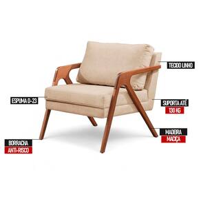 Os pés em madeira proporcionam estabilidade e resistência, além de agregarem um toque natural e acolhedor ao ambiente. O assento e o encosto são projetados para oferecer um suporte ergonômico, garantindo momentos de relaxamento com conforto e bem-estar.