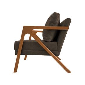 Poltrona Mona Monique Luxo Base Madeira Maciça Cerejeira Linho Marrom