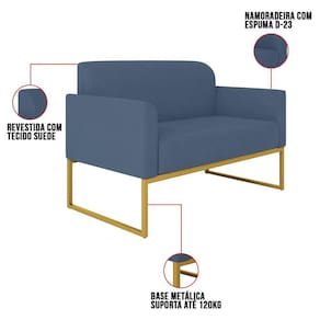 Poltrona Namoradeira 2 Lugares Base Industrial Dourada Maressa S04 Suede Azul Marinho - Ibiza é especial, sua é estrutura é reforçada, tem cores vivas, seja no revestimento, seja na sua base. Tenha certeza que ela vai tornar aqueles momentos juntos algo especial, afinal é importante estarmos sempre próximos daqueles que gostamos.
