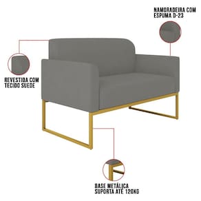 Poltrona Namoradeira 2 Lugares Base Industrial Dourada Maressa S08 Suede Grafite - Ibiza é especial, sua é estrutura é reforçada, tem cores vivas, seja no revestimento, seja na sua base. Tenha certeza que ela vai tornar aqueles momentos juntos algo especial, afinal é importante estarmos sempre próximos daqueles que gostamos.