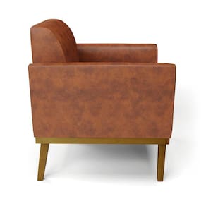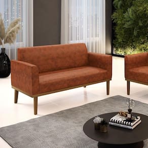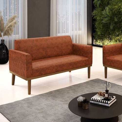 Poltrona Namoradeira Decorativa Pés Fixo Em Madeira Castanho Pu Nozes - Marrom